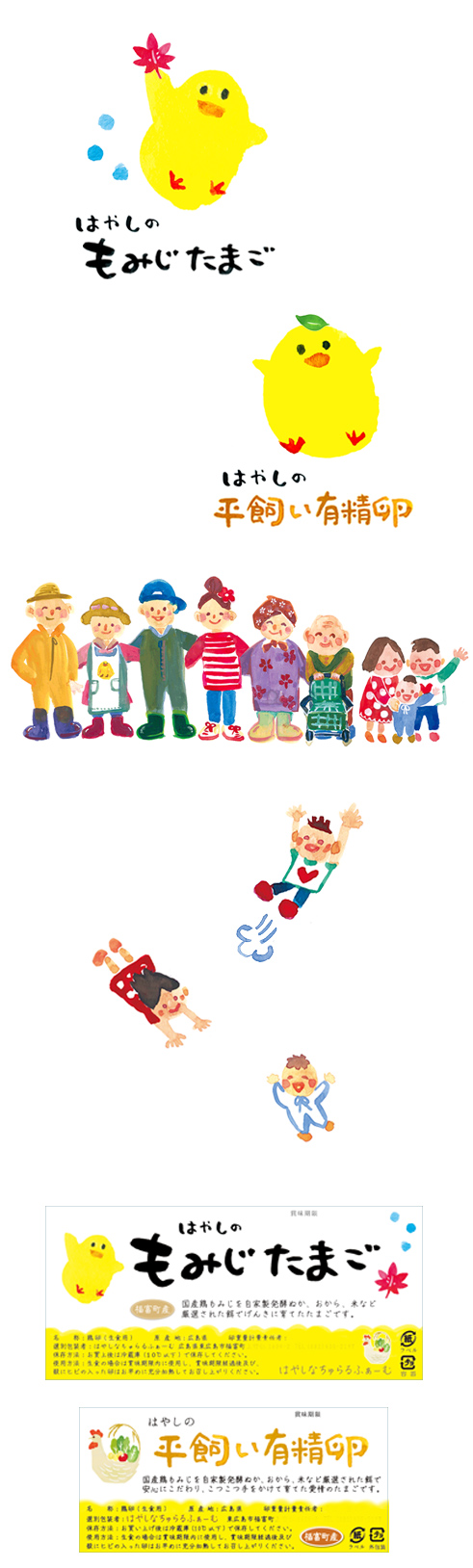東広島市福富町の養鶏家「はやしなちゅらるふぁーむ」様のひよこちゃんのキャラクター、ロゴや商品ラベルなど制作させていただきました。