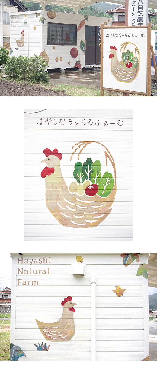 東広島市福富町にある、卵農家はやしなちゅらるふぁーむ様のお店に壁画を描かせていただきました。 製作中もはやしなちゅらるふぁーむの皆様、お客様、地元のたくさんの農家様が話しかけてくださり、本当に暖かい現場でした。 今後はまわりに木やお花などもたくさん植えられて、皆さんが気軽に休憩できる公園のようにされるそうです。
