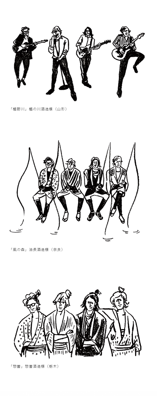 楯の川酒造様とフランスのバンド「PHOENIX」のコラボ日本酒用に描かせていただきました。 イラストは日本酒のラベルやTシャツ、トートバッグにも使っていただきました。 第一弾は 楯野川(楯の川酒造様)、第二弾は風の森(油長酒造様)、第三弾は惣誉(惣誉酒造様)の日本酒が発売されました。